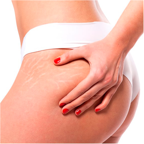 Las estrías son lesiones cutáneas atróficas que aparecen debido a una pérdida de elasticidad del tejido conjuntivo y la ruptura de las fibras de elastina y colágeno de la piel.